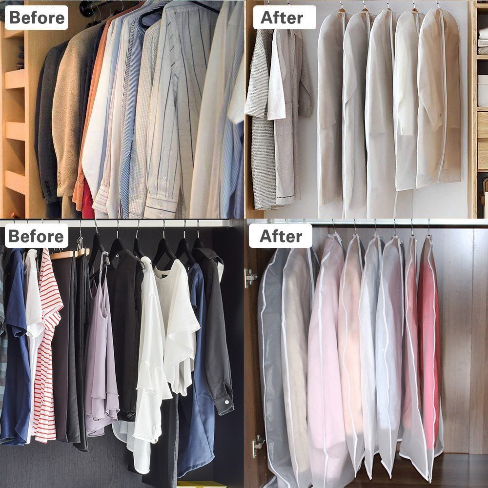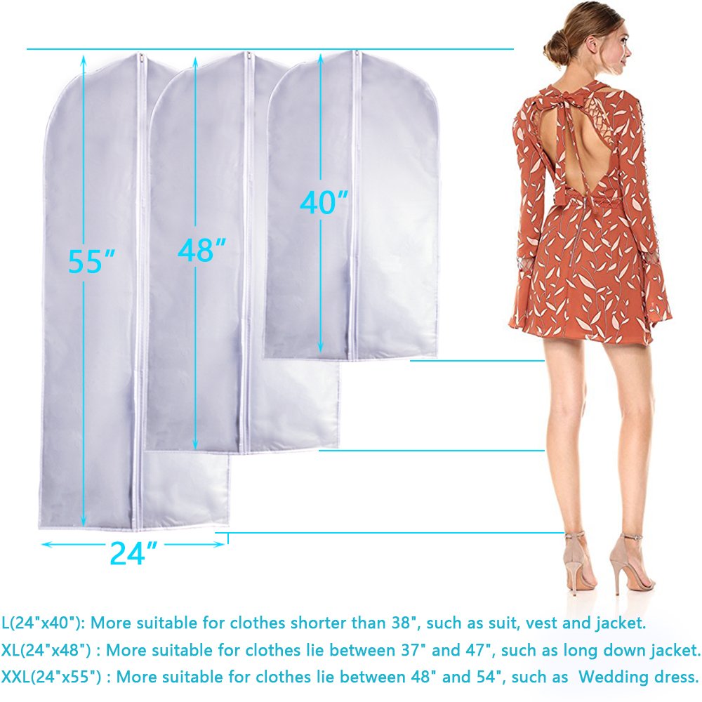 50" Clear Garment Bags for Hanging Clothes Storage with 4" Gussetes, Moth Proof Suits Bags for Travel, Clothing Storage Bags for Coats, Jacket, Shirts, Dresses, Transparent White,24"x 50"x4"/ 3 Pack. 5.0 out of 5 stars 10. $25.99 $ 25. 99. FREE delivery Mon, Nov 27 on $35 of items shipped by Amazon.