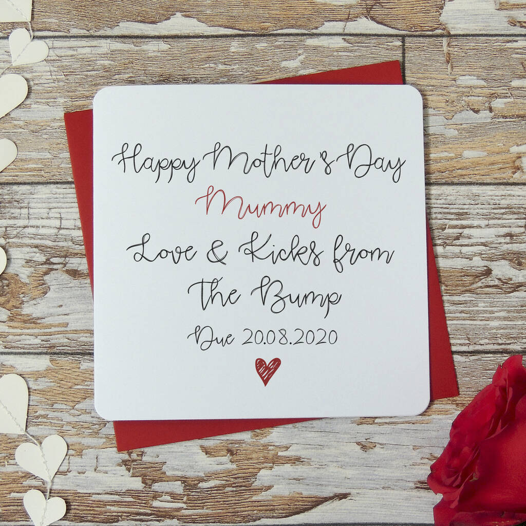60 results. Celebrate expecting your own bundle of joy with a special Mother's Day card from the bump. Perfect for the mum-to-be. Make it special with a name, photo or memorable message. A great way to celebrate the first of many Mother's Days that any expecting mum will love.