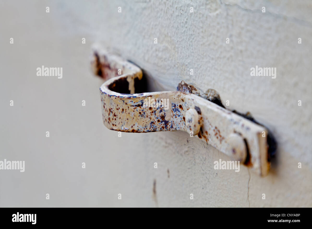 Any orientation rusty eye but where is the bolt, mounted on a white emulsion paint breeze block