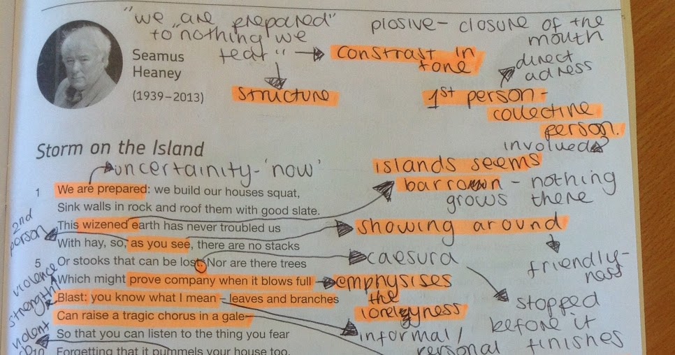 Mr Webb's online classroom Annotation for Storm on the Island by Heaney