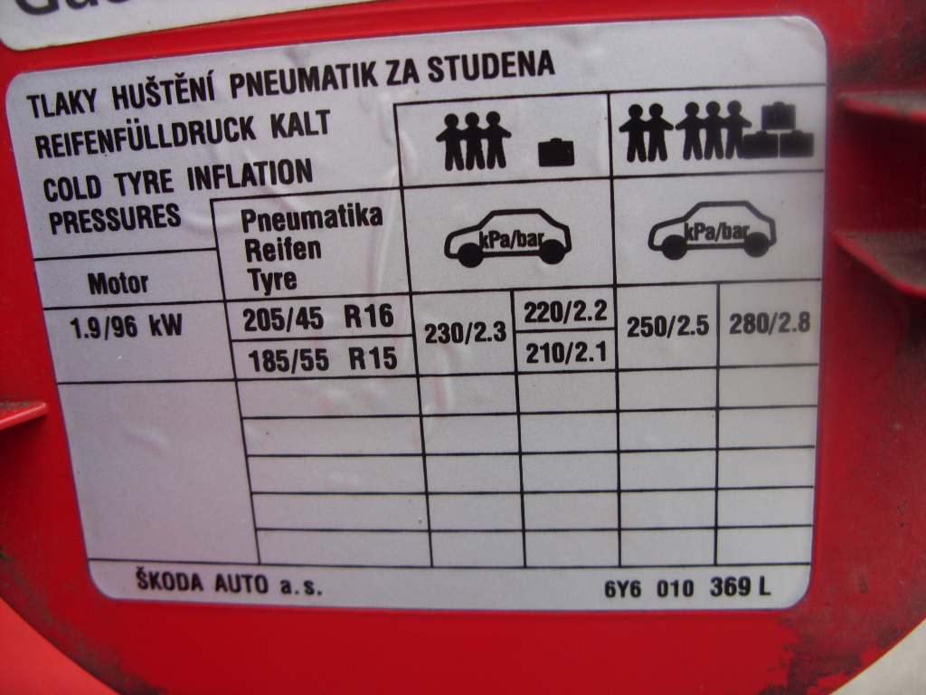 2005 Fabia VRS tyre pressure question? Skoda Fabia Mk I (19992007) BRISKODA